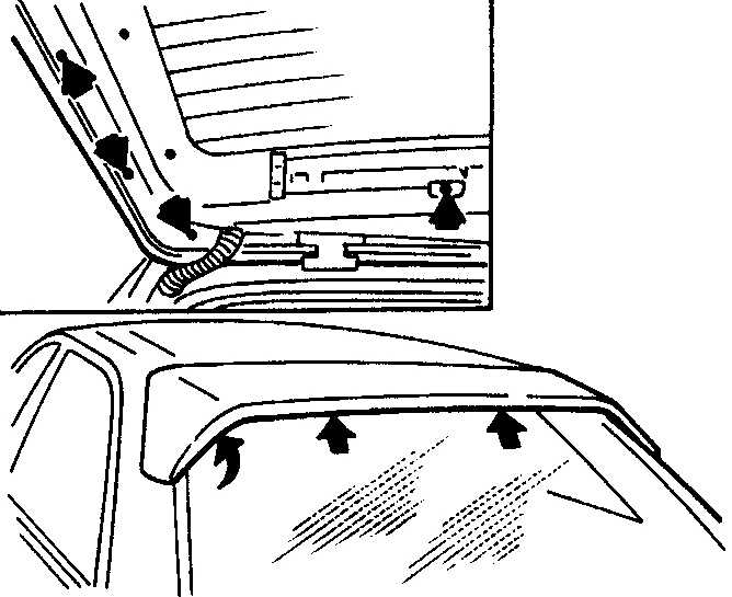 болтов и четыре гайки крепления спойлера (указаны стрелками).